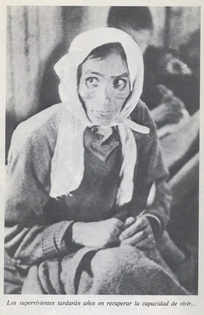 Por otro lado, al tener conocimiento en diversos idiomas, fue obligada a fungir como intérprete entre la Gestapo y los reclusos, lo cual hizo que se enterara de torturas e interrogatorios realizados a sus compañeros, aumentando sufrimiento psicológico adicional al propio. Esto, de acuerdo con su testimonio, era un castigo peor que el de recibir violencia física ya que vio morir a niños frente a sus padres y otras escenas de horror indescriptibles. Luego tres años en Auschwitz, Dunia fue liberada en 1945, año en el que, de acuerdo con distintas fuentes, le tomaron la siguiente fotografía, misma que aparece en la edición de 1980 de su libro, Nunca Jamás y que te mostramos a continuación