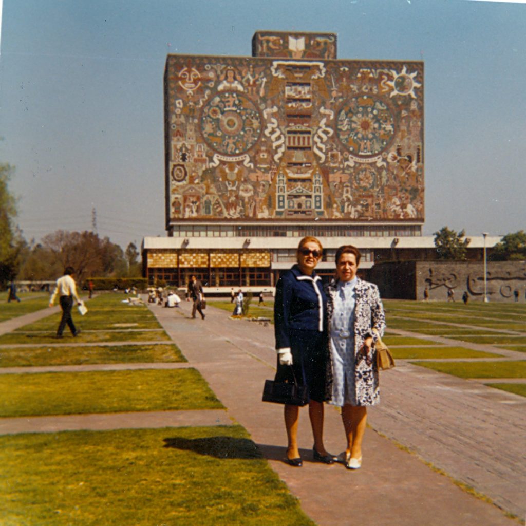 En la última foto que te compartimos, quisimos mostrar esta imagen de Dunia en Ciudad Universitaria frente a la Biblioteca Central. Esta fotografía nos ofrece la visión de una persona diferente a la de las fotografías anteriores. Vemos a una mujer que integró a su vida las cicatrices que el Holocausto dejó, dando fe de que no solo sobrevivió, sino que prevaleció. Dunia Wasserstrom falleció en octubre de 1991 en la Ciudad de México.
